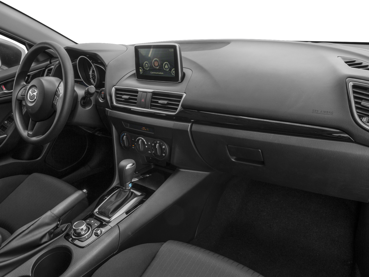 The Mazda3 i Sport's interior is thoughtfully designed with comfortable cloth seating a driver's armrest and a host of convenient features including: