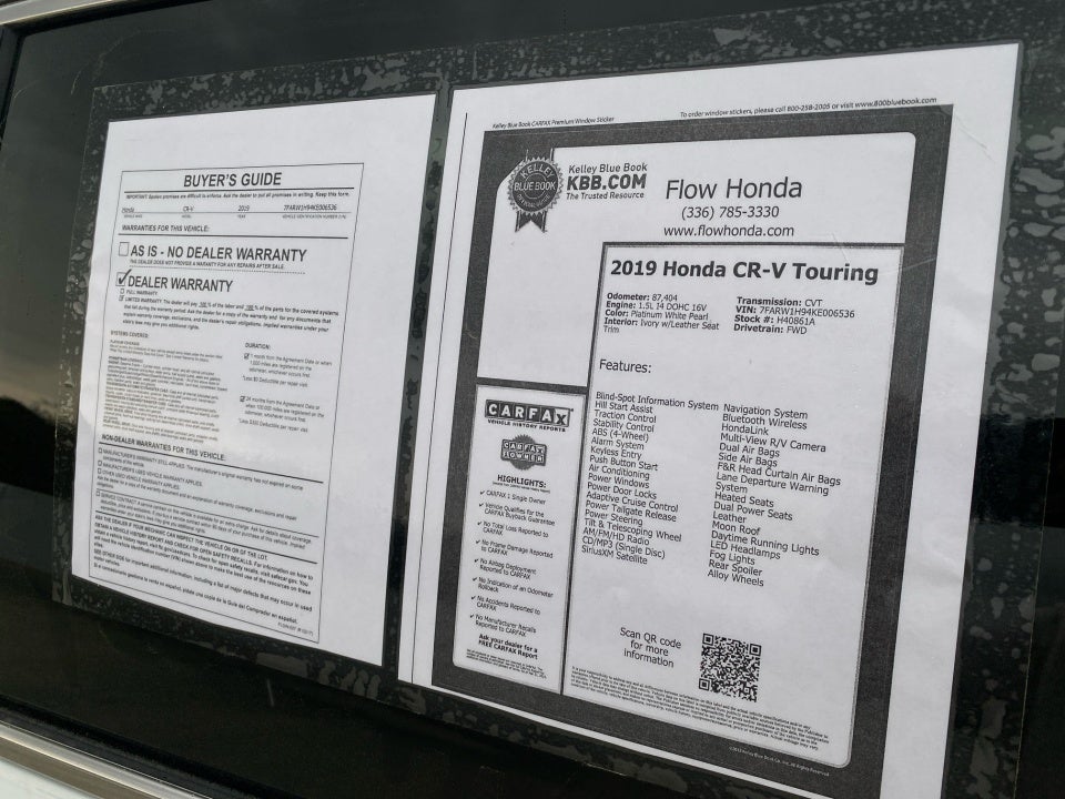 FLOW CERTIFIED! 12 MONTHS/12000 MILE WARRANTY and a free maintenance package on this 2019 Honda CR-V Platinum White Pearl Touring! **