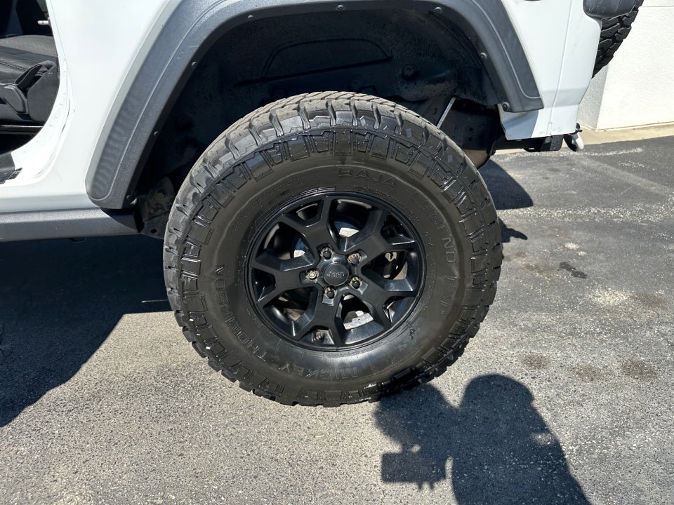 FLOW CERTIFIED! 2 year POWERTRAIN WARRANTY UP TO 100K MILES AND FLOW 2YR/24 000 MAINTENANCE PACKAGE** Clean CARFAX Brand New Mickey Thompson Baja Legends Rough Country Winch 4-Wheel Drive Swing Gate Decal 7.0" Touchscreen Display 97 MPH Vehicle Max Speed Calibration Air Conditioning w/Auto Temperature Control Air Filtering Anti-Lock 4-Wheel Disc HD Brakes Anti-Spin Differential Rear Axle Apple CarPlay Automatic Headlamps Black Grille Black Trail Rated Badge Cluster 7.0" TFT Color Display Deep Tint Sunscreen Windows Front 1-Touch Down Power Windows Front LED Fog Lamps Google Android Auto GPS Antenna Input Integrated Center Stack Radio Leather Wrapped Steering Wheel LED Headlamp & Fog Lamp Group LED Reflector Headlamps Matte Black Jeep Badge MOPAR All-Weather Floor Mats Power Heated Mirrors Quick Order Package 24W Willys Radio: Uconnect 4 w/7" Display Remote Keyless Entry Security Alarm SiriusXM Satellite Radio Speed Sensitive Power Locks Sun Visors w/Illuminated Vanity Mirrors Technology Group USB Host Flip Wheels: 17" x 7.5" Moab Black Aluminum Willys Willys Hood Decal Wrangler Decal.