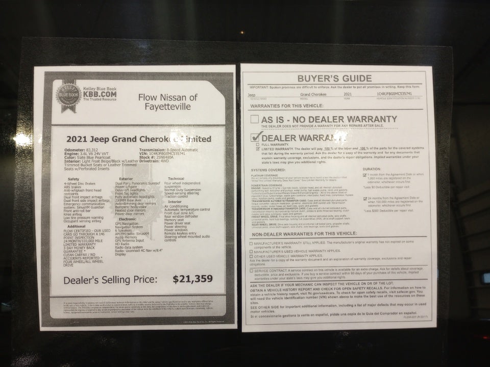 All of our Pre-Owned vehicles go through a QRP(Quality Renewal Process). Our customers tell us that we have the most professional trustworthy & courteous staff they've ever experienced at a car dealership. Please come check out Flow Nissan of Fayetteville's Easy Transparent Fun No Haggle No Pressure shopping experience. Don't hesitate to contact us at www.flownissanfayetteville.com or simply by calling 910-323-4400 to set up your VIP test drive. Thank you for allowing us to serve your automotive needs over the past 50+ years.