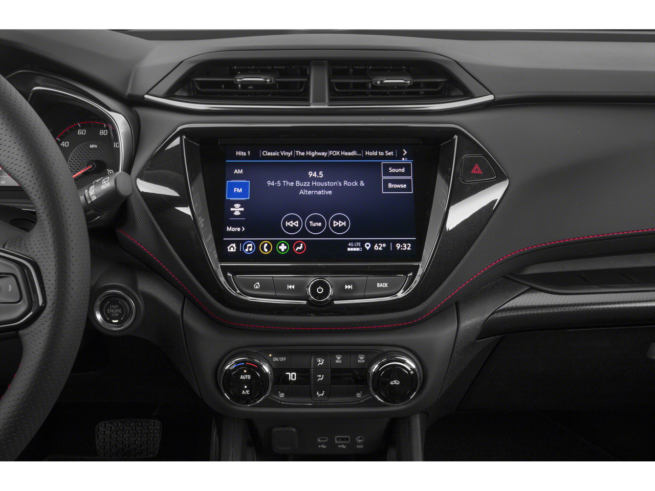 - USB ports and auxiliary input jack one type-A USB, one type-C USB, and one auxiliary input jack