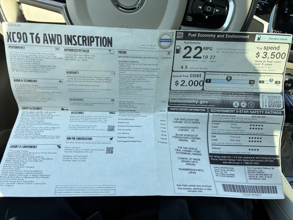 2022 Volvo XC90 T6 Inscription 7 Passenger