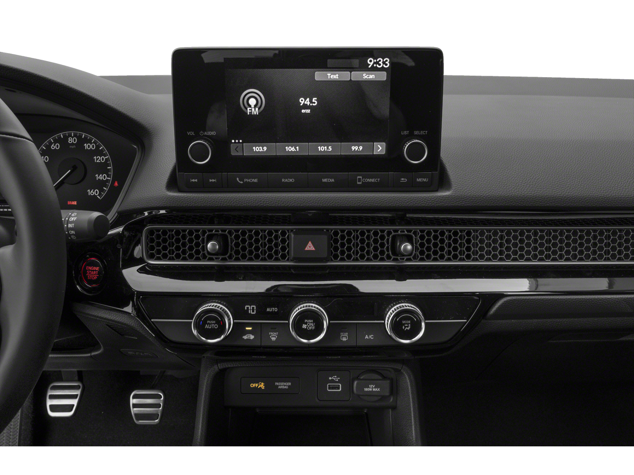 - Radio: 180-Watt Audio System -inc: 8 speakers, 7" color touchscreen, Bluetooth® HandsFreeLink and streaming audio, Radio Data System (RDS), Speed-Sensitive Volume Compensation (SVC), HondaLink, SMS text message function (Your wireless carrier's rate plans apply, State or local laws may limit use of texting feature.), Apple CarPlay and Android Auto compatibility and 2.5-amp USB smartphone/audio interface port in front console
