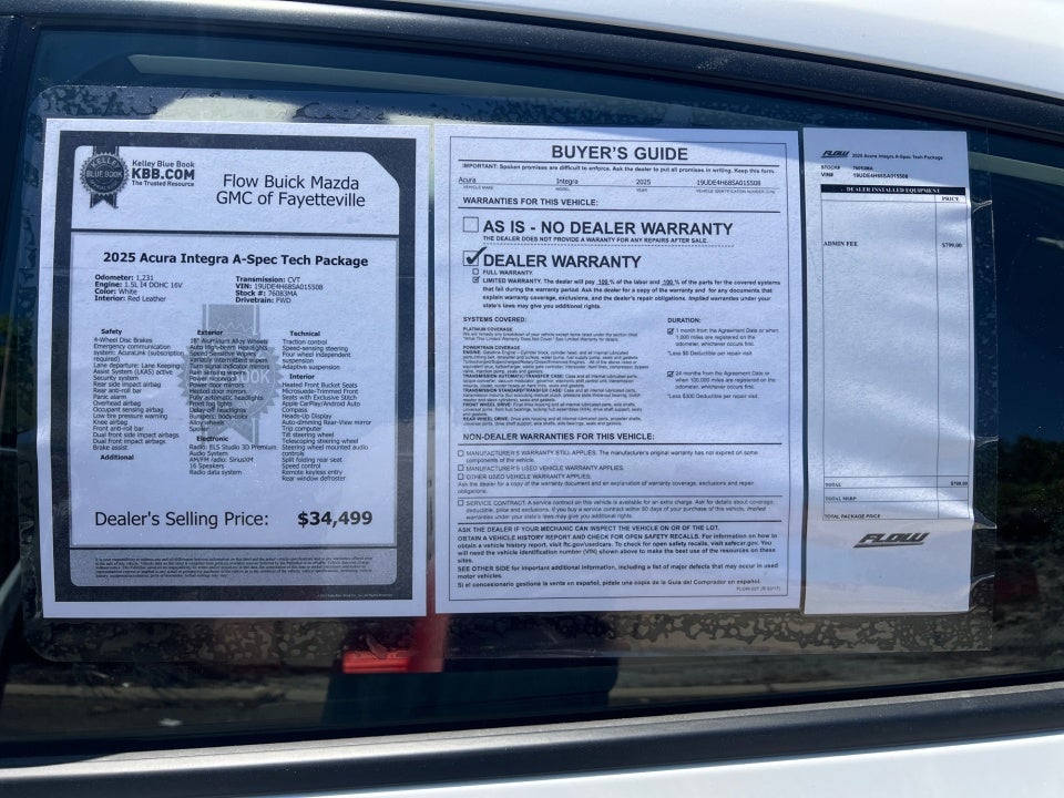 - Dealership Administrative Fee: $799