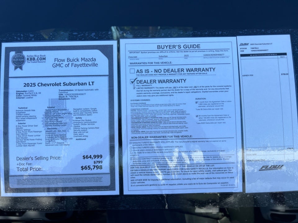 - Dealership Administrative Fee: $799