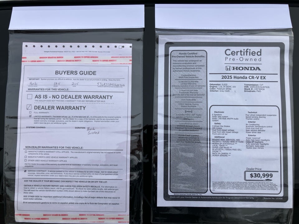 Certified. HondaTrue Certified Details: