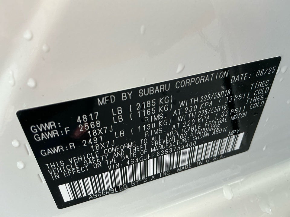 • Radio: Subaru 11.6" Multimedia Plus System -inc: AM/FM stereo, HD Radio, multi-touch gesture high resolution display screen, voice activated controls, Bluetooth® audio streaming and hands-free phone connectivity, Bluetooth® hands-free SMS text messaging connectivity, iPod control capability, SiriusXM w/360L (4 months free trial included/subscription required after), SiriusXM Travel Link (4 months free trial included/subscription required after), smartphone integration: Android Auto and Apple CarPlay w/full screen view and wireless connection, USB and Over The Air (OTA) audio system update, steering wheel audio system and Bluetooth® control switches, 6 speakers (2 dash panel tweeter, 2 front door and 2 rear door), illuminated 3.5mm auxiliary input jack, illuminated front USB A and C input/charge ports and illuminated rear USB A and C charge ports