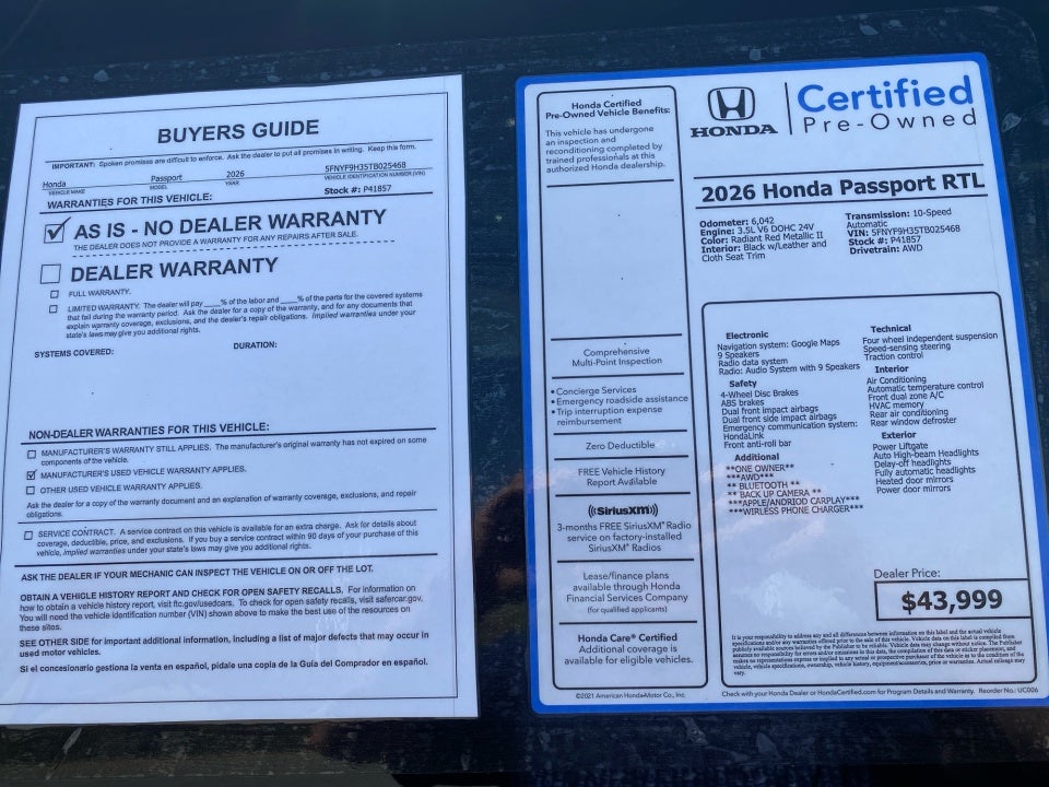 Flow Honda is excited to offer this outstanding-looking 2026 Honda Passport Radiant Red Metallic II RTL with the following features: