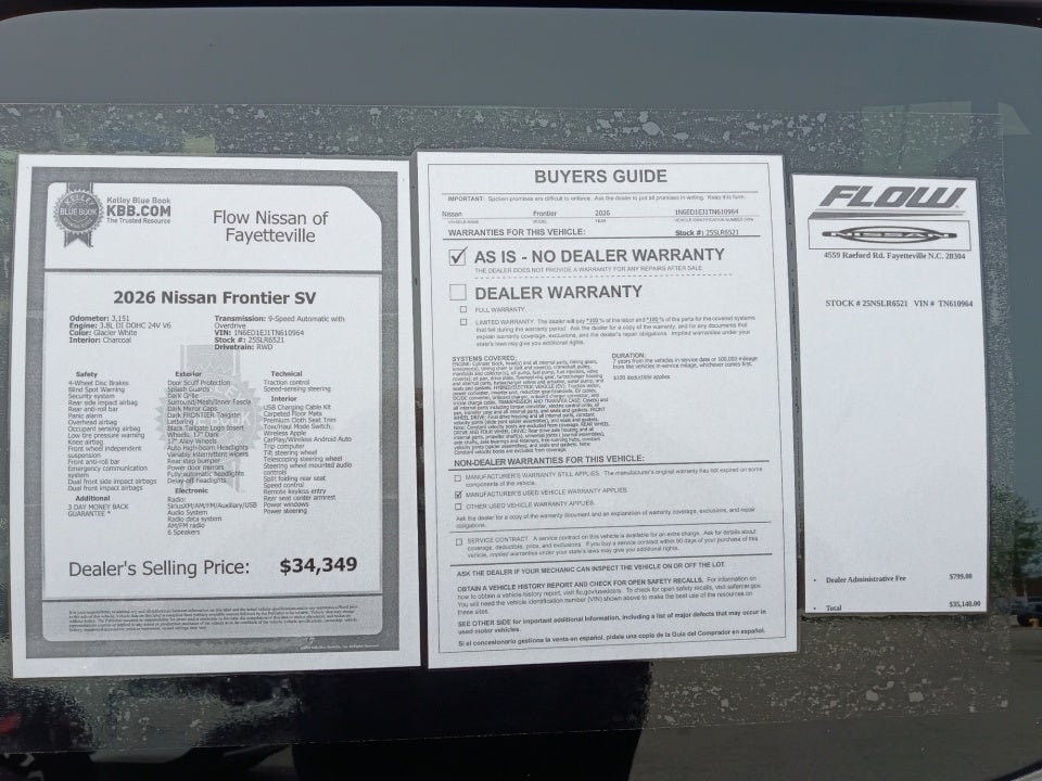 All of our Pre-Owned vehicles go through a QRP(Quality Renewal Process). Our customers tell us that we have the most professional trustworthy & courteous staff they've ever experienced at a car dealership. Please come check out Flow Nissan of Fayetteville's Easy Transparent Fun No Haggle No Pressure shopping experience. Don't hesitate to contact us at www.flownissanfayetteville.com or simply by calling 910-323-4400 to set up your VIP test drive. Thank you for allowing us to serve your automotive needs over the past 50+ years.